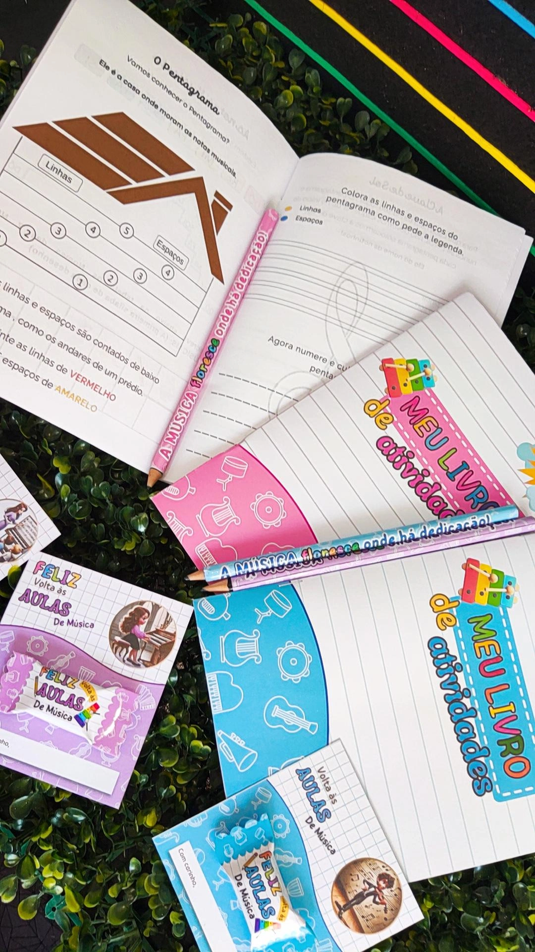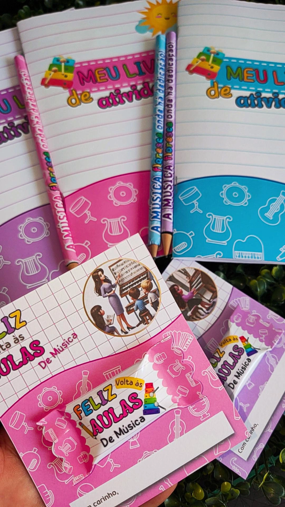 Combo volta as aulas em 3 cores, lilás, azul e rosa.